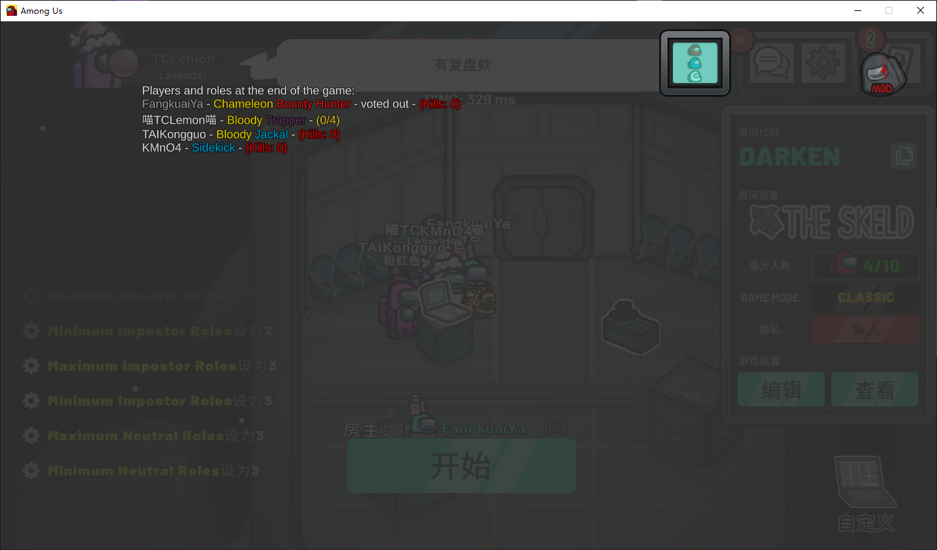 添加了部分按钮按键重新绑定-所有杀死按钮现在都将使用原版杀死按钮快捷按键,与通风口和每个角色的第一个能力相同。